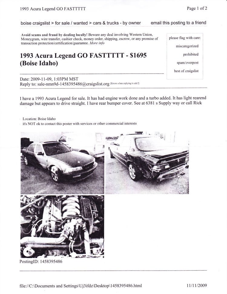 This is a thread from the Legend forums where I talked about the experience. The car was listed for sale at the time for $28,990.