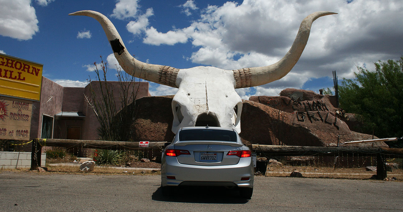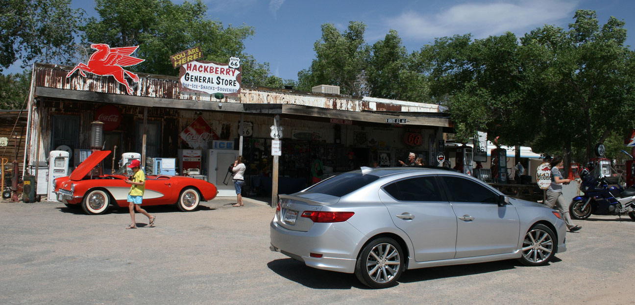 Since then, it’s been bypassed, bulldozed, or otherwise forgotten except for in a few special sections where Route 66 heritage is embraced. I’ve driven a couple of those areas (Oatman in the Legend in 2007 and Flagstaff in the ILX last September). My friend Jack and I took my 2013 Acura ILX on a 9-hour adventure to explore some yet-unseen roads in northwestern Arizona. Our first stop was the Wikieup Trading Post off Highway 93.