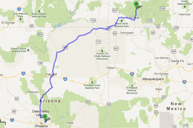 Back through Durango, Cortez, and descending to the desert, I once again abandoned the green forest and became familiar with the barren landscape of the desert.