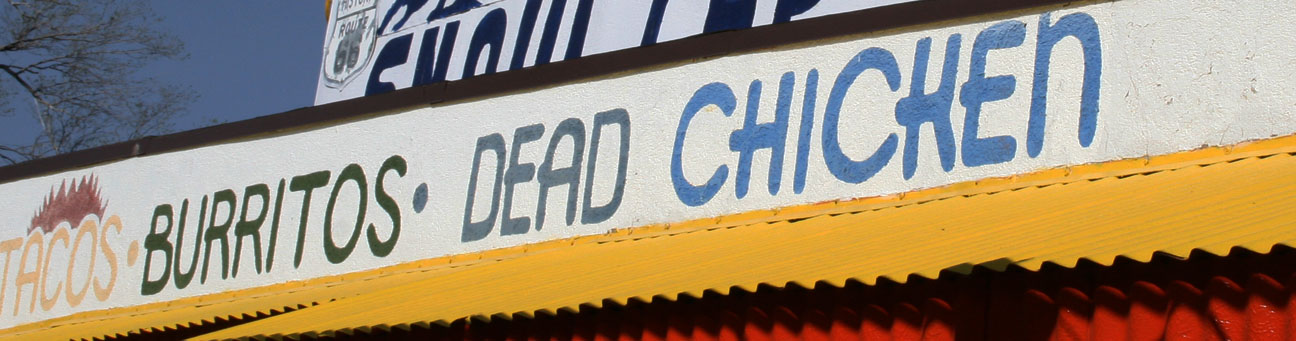 The road heads northwest from the Kingman area and quickly slims down to 2 lanes from 4. Not far up Route 66, we saw the (now abandoned) Kozy Corner Trailer Park. There are a couple special things about this particular trailer park.