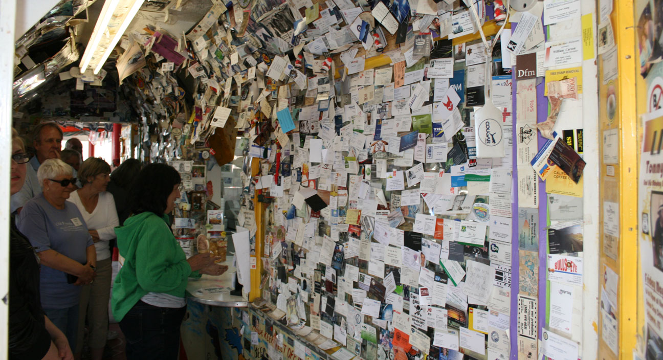 Inside the Snow Cap, the walls are lined ceiling-to-floor with pictures and business cards from guests who have visited since this place opened in 1953. I added my business card to the mix.