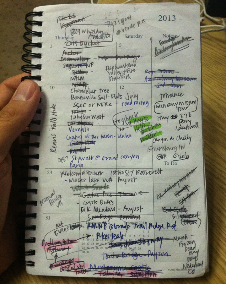Thought I’d share this messy page from my day planner. This started out as my list of “to-see” driving destinations for 2013. Notice how many of them I’ve already crossed off. And the list continues to grow.