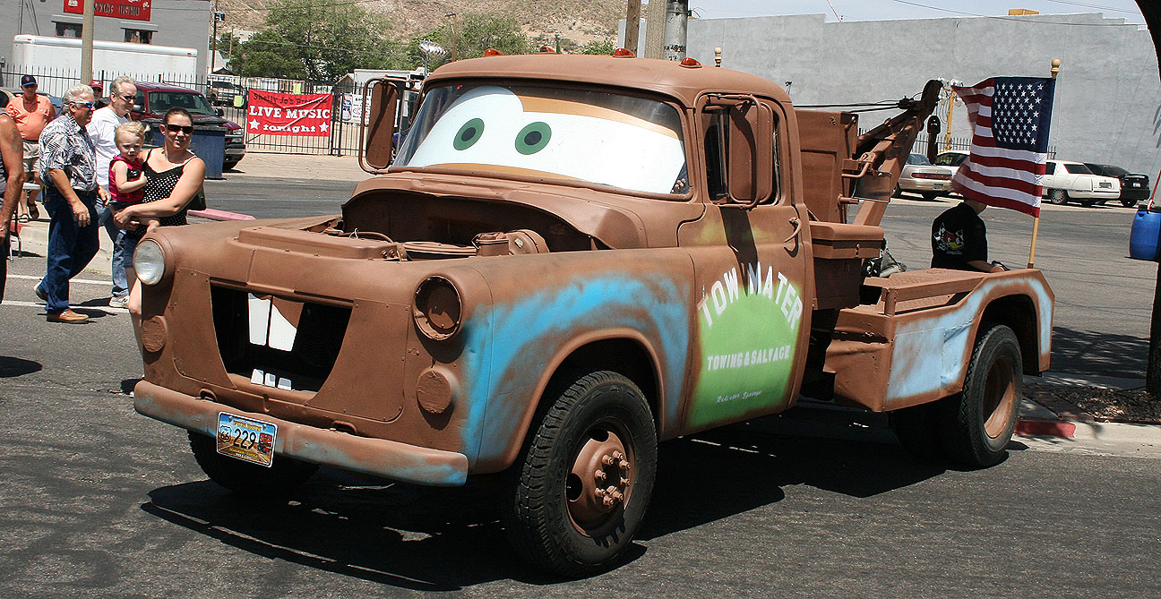 Out front, we saw a few eye catching rides, including this tow truck inspired by Tow Mater from the 2006 Disney / Pixar movie “Cars.” More about Cars later.