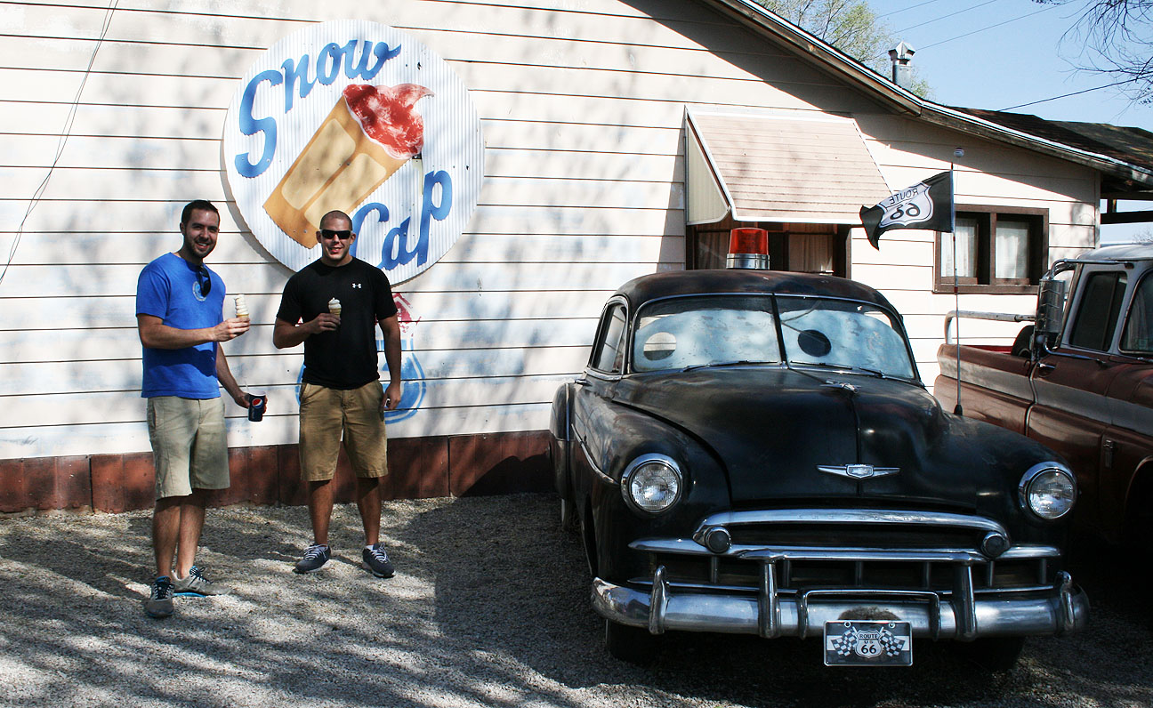 For me, the most awaited point of interest had arrived: Snow Cap Drive-In, seen in the background here: