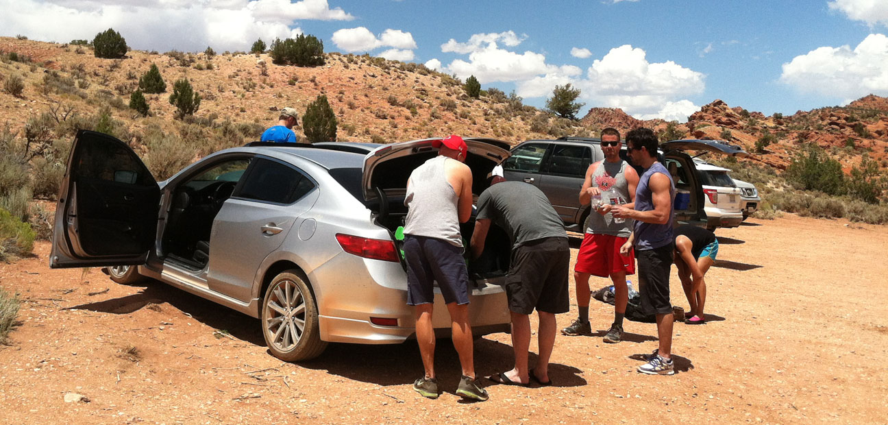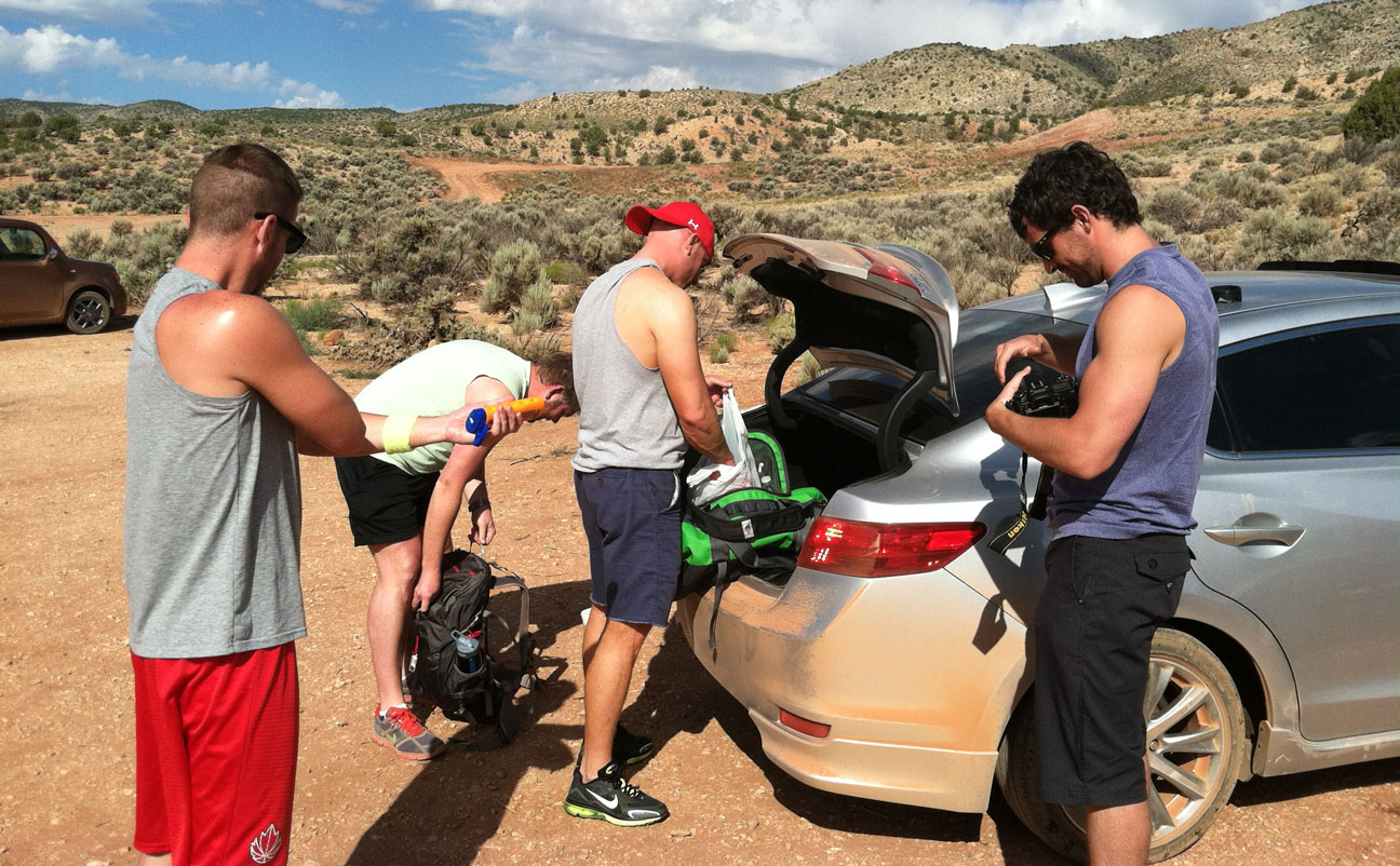 We parked our dirty cars and started gearing up for the hike ahead. With temperatures over 100 degrees Fahrenheit, we knew we had to pack plenty of water.