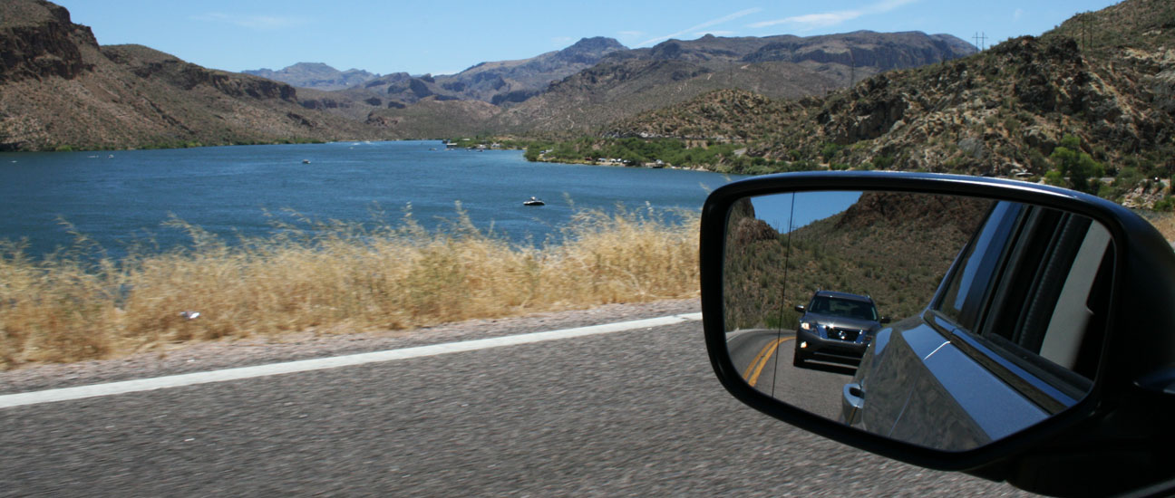 In March 2008, I took my Acura Legend where (maybe) no Acura had gone before:  a dirt road that was once the main way to get from Roosevelt, Arizona to Apache Junction, Arizona.  The total drive distance when going this route is 45 miles.  To avoid the dirt road and go around it on paved streets, the distance is significantly longer at 79 miles.  The “Apache Trail,” as it became named, is also known as Arizona Highway 88 and to this day is one of my favorite roads to drive.