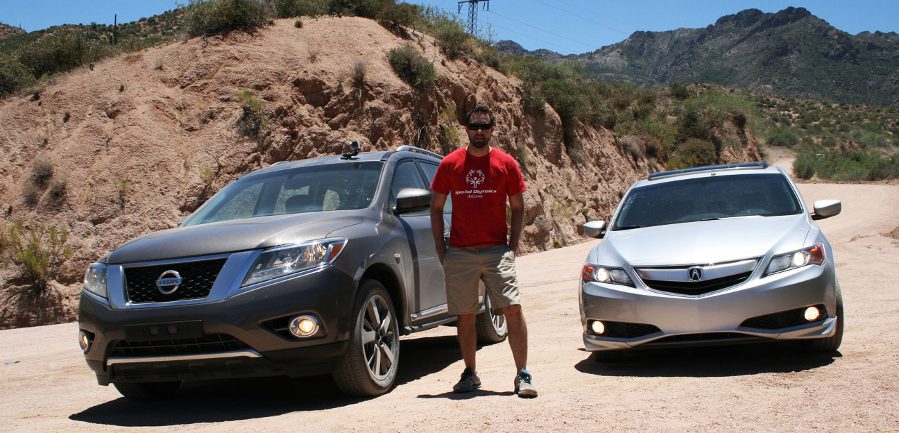 I got a picture with our two transport vehicles.  The 2013 Nissan Pathfinder was featured back in March on a trip to Bagdad, Arizona.  It’s a Middle Eastern-spec vehicle with speed in kilometers per hour on the gauge cluster.