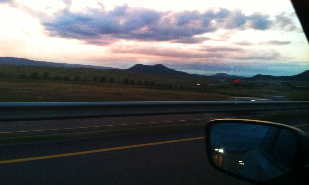 Sunset on I-25 as I roll through Castle Rock, Colorado northbound.