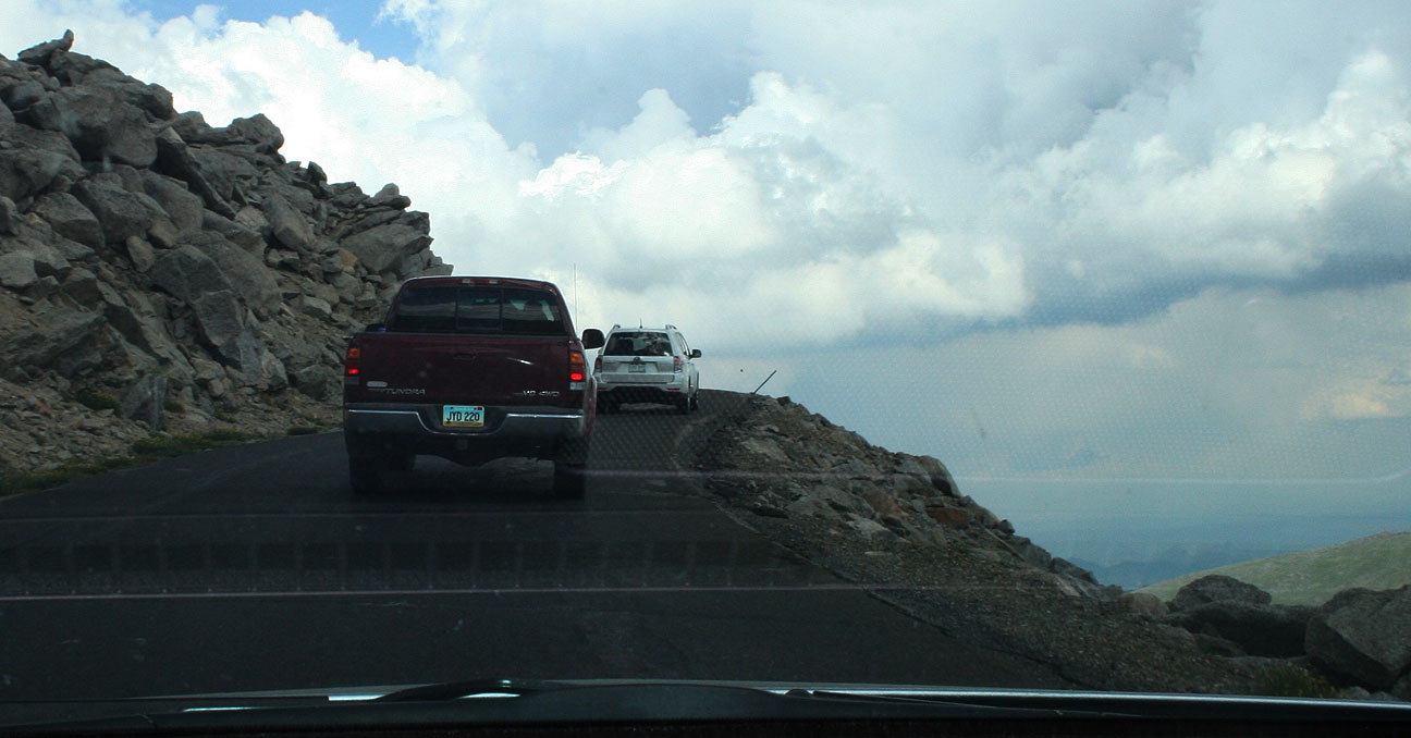 A tollbooth at the base of Mount Evans road collected $10 per vehicle, then we were on our way to climb our first “Fourteener.” Denver people call a “fourteener” any of the area mountain peaks (which are several) which exceed 14,000 feet in elevation.