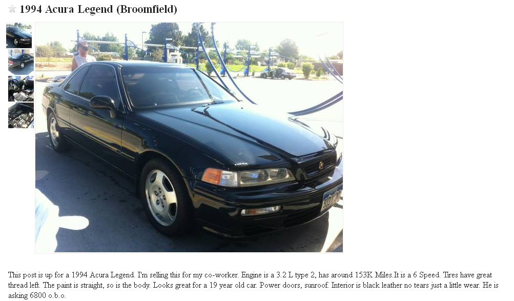 Determined to still climb the mountain that day, we delayed our plans and entertained ourselves in the meantime. Jeremy and I went to see & drive this 1994 Acura Legend LS Coupe 6-Speed that’s currently for sale on Denver craigslist. A friend asked me to give it a look since he’s a prospective buyer.