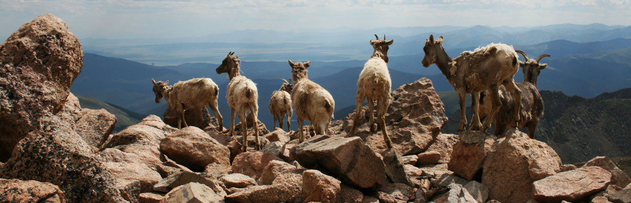 Mount Evans is the road into the sky. Drive from 8,700 feet at Idaho Spring where you turn off Interstate 70 to 14,240 feet to the summit, and you will pass through 3 life zones, passing ancient trees, lakes and forest to the land above timberline. It can be 90 degrees in Denver and 40 degrees at the top of Mount Evans. Mountain Goats and Bighorn Sheep will greet you as you climb to the top of the world.