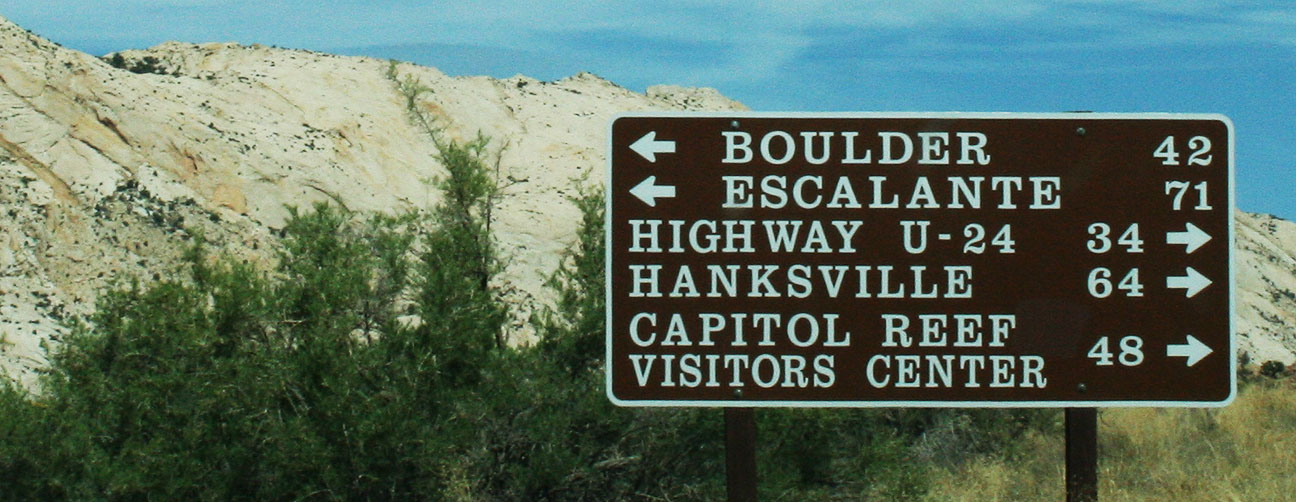 After heading north from the marina on State Route 276 for about 4-5 miles, we turned west on Burr Trail. There were no signs or markings aside from this lonely one.