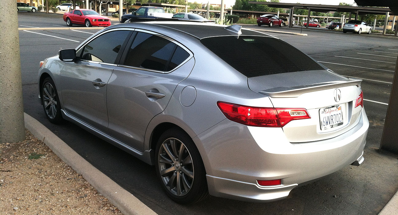 This is a picture I took of my ILX last week in northwestern Arizona, but with some special ‘tweaks’ by Dillon. Notice that the vehicle has been equipped with red/clear taillights, dual chrome exhaust tips, and an accent chrome strip along the edge of the trunk lid.