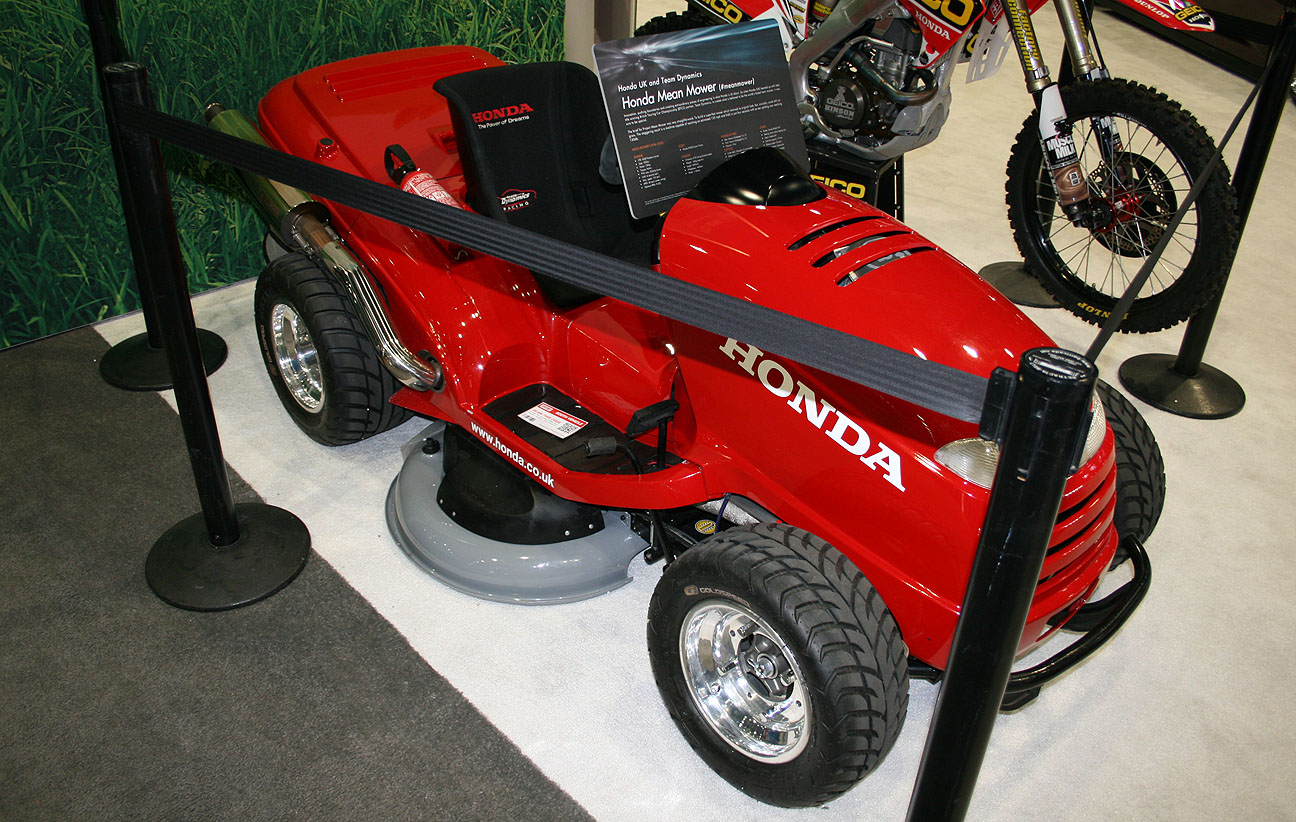 Here’s a unique ride. Anyone see the “Mean Mower” ad awhile back from Honda? You’re looking at a lawnmower that’s capable of 133 miles per hour and a 0-60 mph time of about 4 seconds. This is the type of rig that Tim Taylor from Home Improvement would be proud to own. MORE POWER!