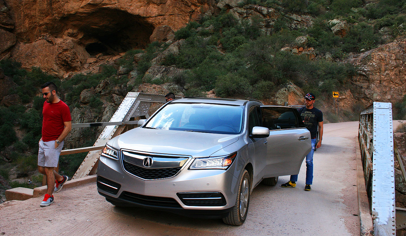 You know those grab handles attached to the ceiling above each door inside most vehicles? Better make sure those are tightly fastened before attempting to descend the “Fish Creek Grade” on the Apache Trail. The ruts in the narrow dirt road quickly increased in size, the grade led us sharply downward, and there was nothing but a wooden plank guardrail separating us from plummeting into the sandstone canyon hundreds of feet below. Still, the MDX was easy to navigate. Its ground clearance was more than ample for making this descent, and the steering wheel-mounted paddle shifters allowed me to keep the vehicle in 2nd gear without riding the brakes.
