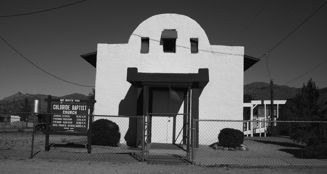 The Chloride Baptist church (established 1891) has Sunday School services at 10:00 a.m. This was the only church building I saw within town limits during my drive through.