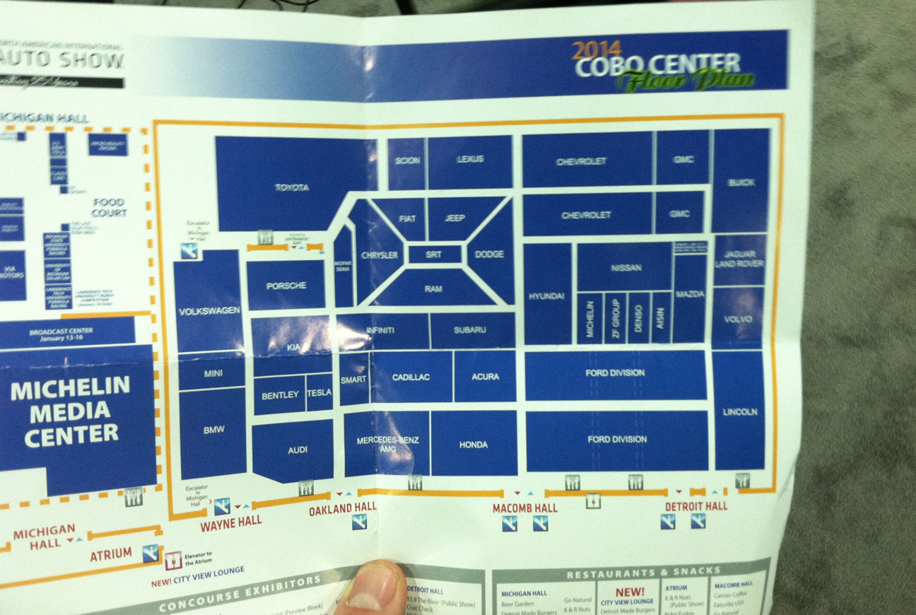 Map of the facility at Cobo Center. Lots of area to cover — too much for just one day, in fact.