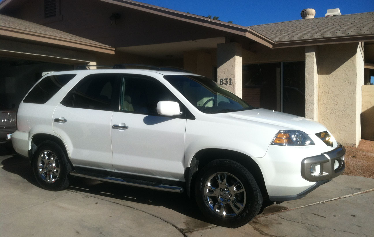 A couple of weeks ago, my friend Devan came over to give me a hand with a detailing project. My buddy Jeremy recently picked up a 2004 Acura MDX that was absolutely covered in every possible dealer accessory. A few of those upgrades are tasteful, but for some reason those brown side moldings just didn’t do much for the look of the vehicle against the pearl white paint. Devan and I stripped the moldings off to give the MDX a cleaner look.