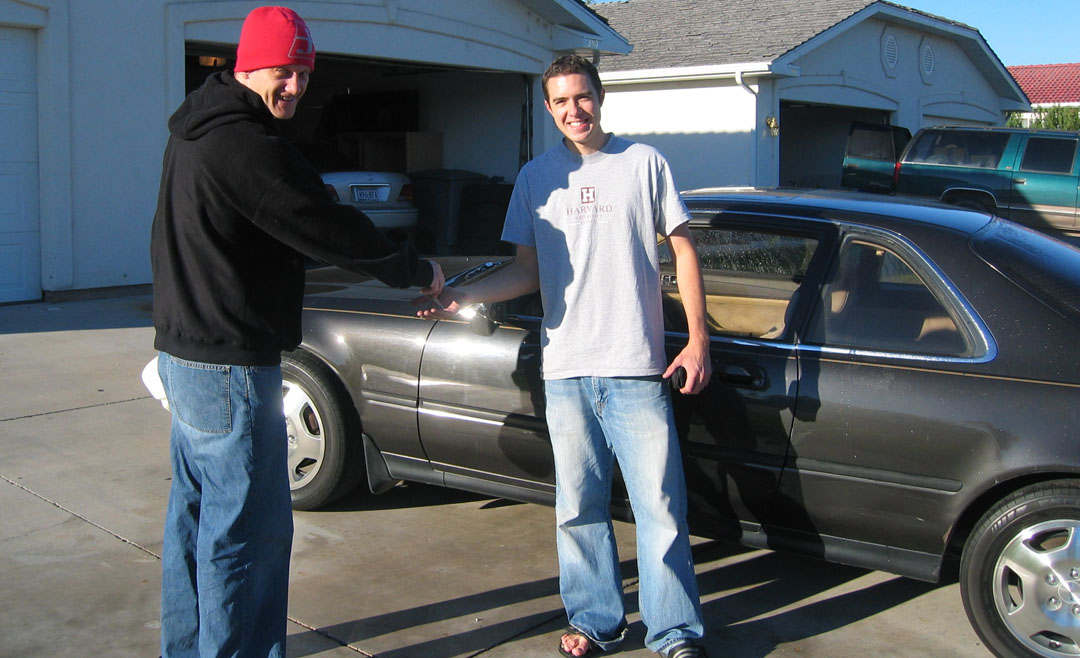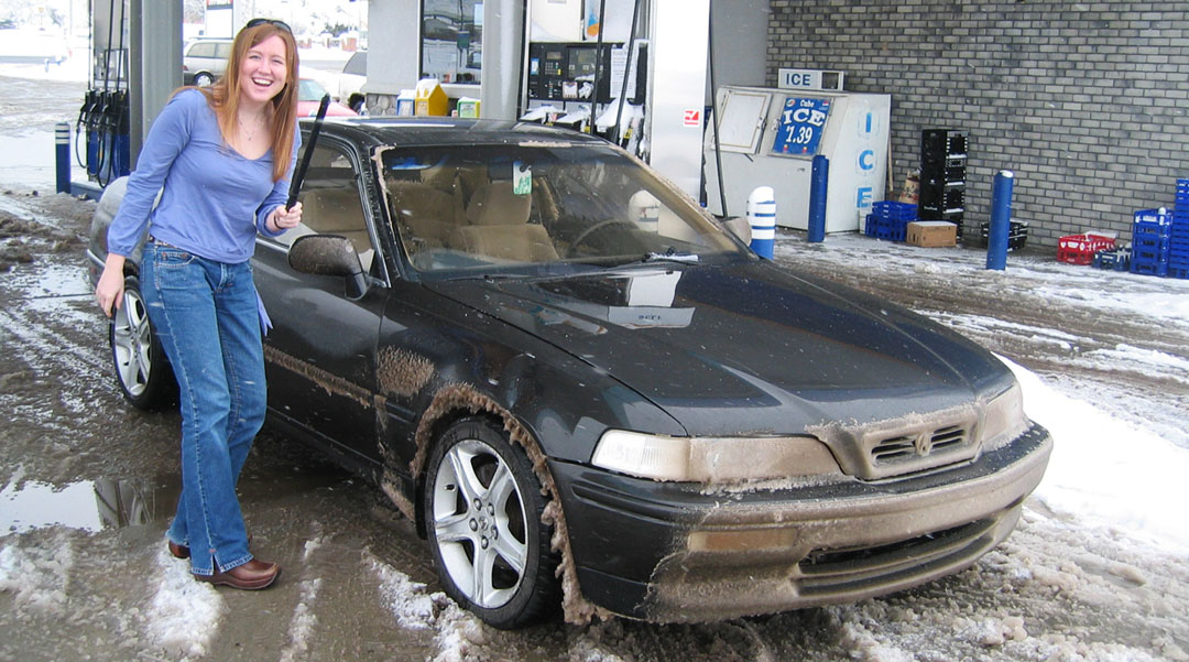 I had every intention of keeping my prized (then sub-150k mile) 1994 Legend out of the snow.  I even bought a “winter beater” – a friend’s 1991 Legend L coupe 5-speed with 186,600 miles on it.  Here’s a shot from October 30, 2004 – the very important key hand-off photo.  He sold me the car for only $700.