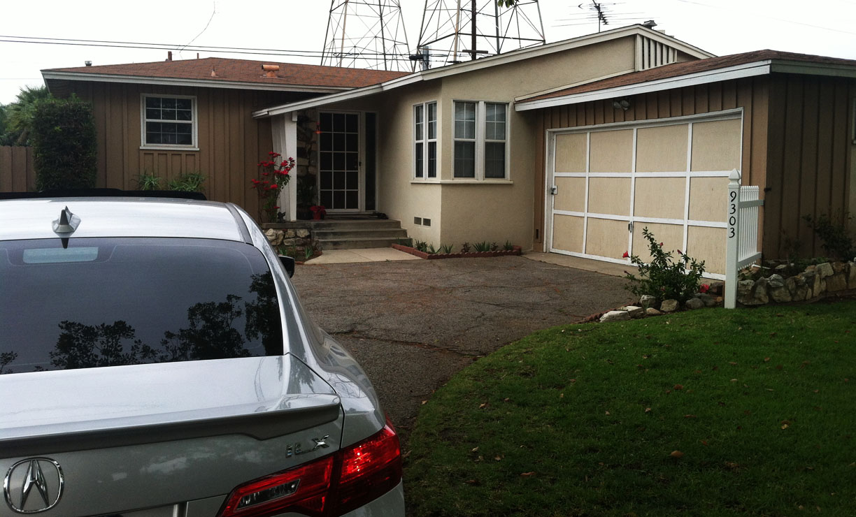 Determined to scout this out, I headed up I-405 first thing on Saturday morning to cross that off my list. Traffic, thankfully, was flowing smoothly throughout the day – I must’ve gotten lucky. The early morning ‘marine layer’ had yet to burn off so it looked a bit overcast, but temperatures were in the mid-60’s and it was a perfect morning to do a little sightseeing. Finding the McFly home was a piece of cake since I had the address in-hand. As I rounded the corner onto Roslyndale Avenue, the street immediately looked familiar to me. It didn’t look like anyone was home, so I pulled the ILX into the driveway for 30 seconds and snapped a photo.