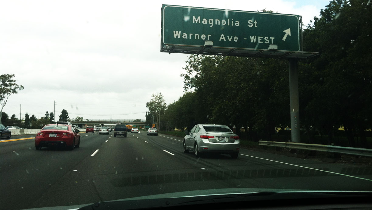 A couple of GPS screen shots to consider. It’s not uncommon to see 7-lane-wide freeways in LA. Each of the “up” arrows on my Garmin Nuvi meant that I was okay to be in any of the 5 center lanes.