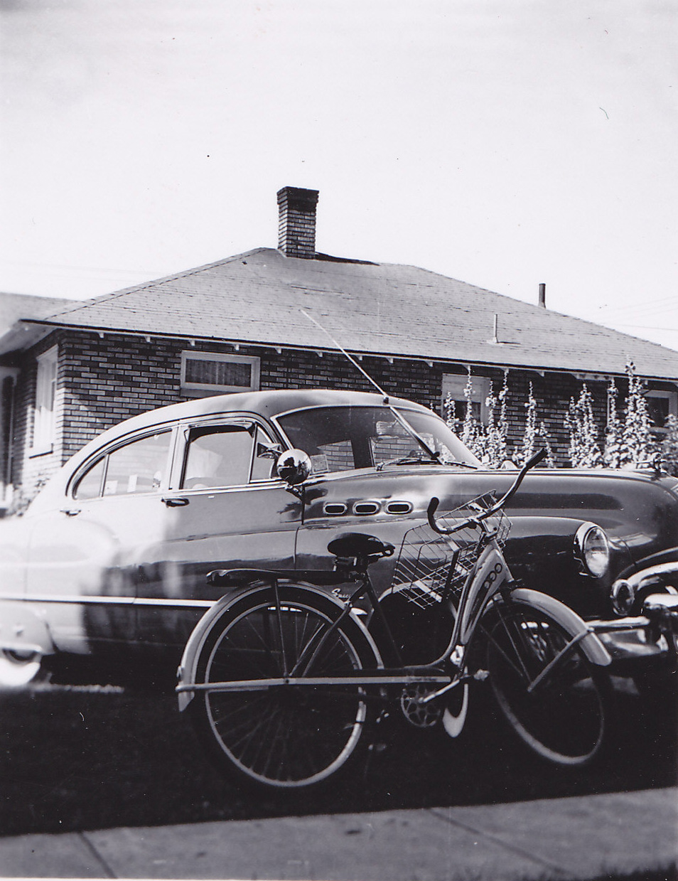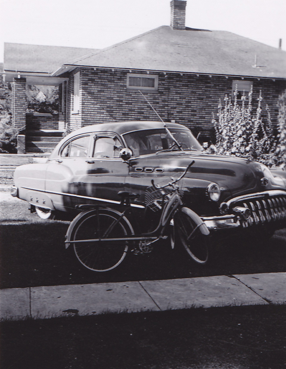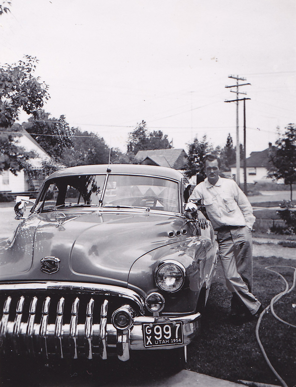 I’m standing here with Russell, after taking my uncle Brett’s car for a drive. It’s a 3-speed on the floor but the transmission requires a great deal of finesse to operate. It’s the first time I’ve ever made an attempt at “double-clutching.” I learned (quickly) that this old Ford does not like to down-shift. I ground a few gears!