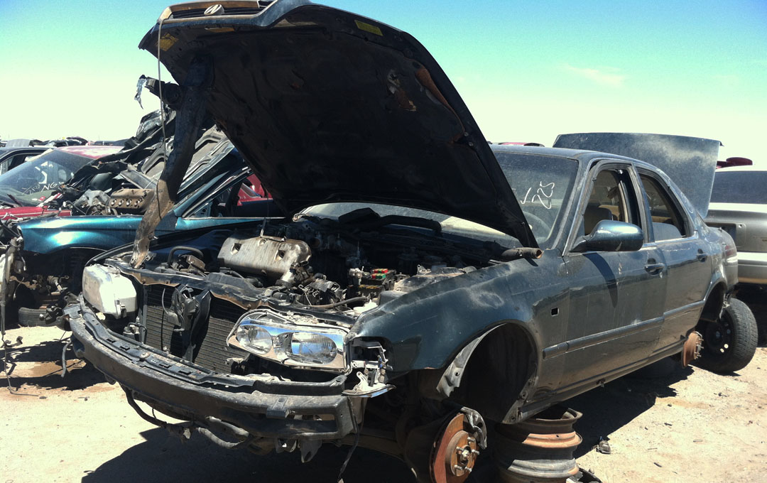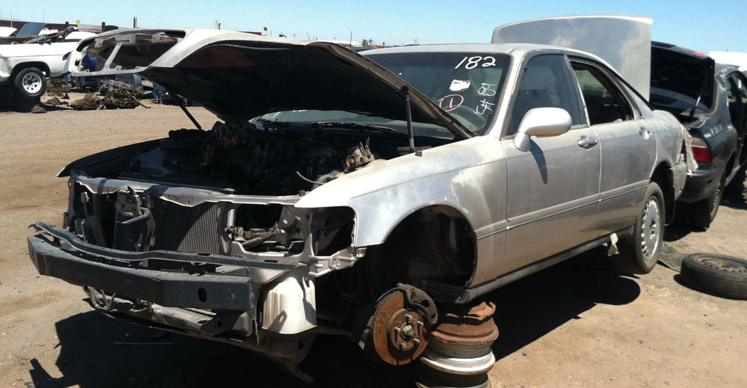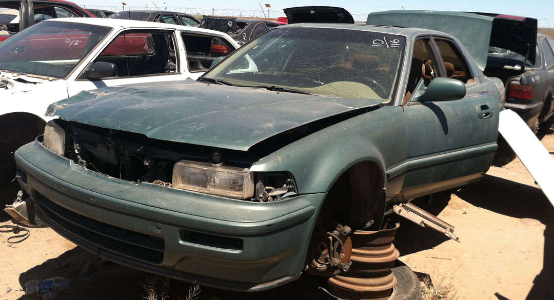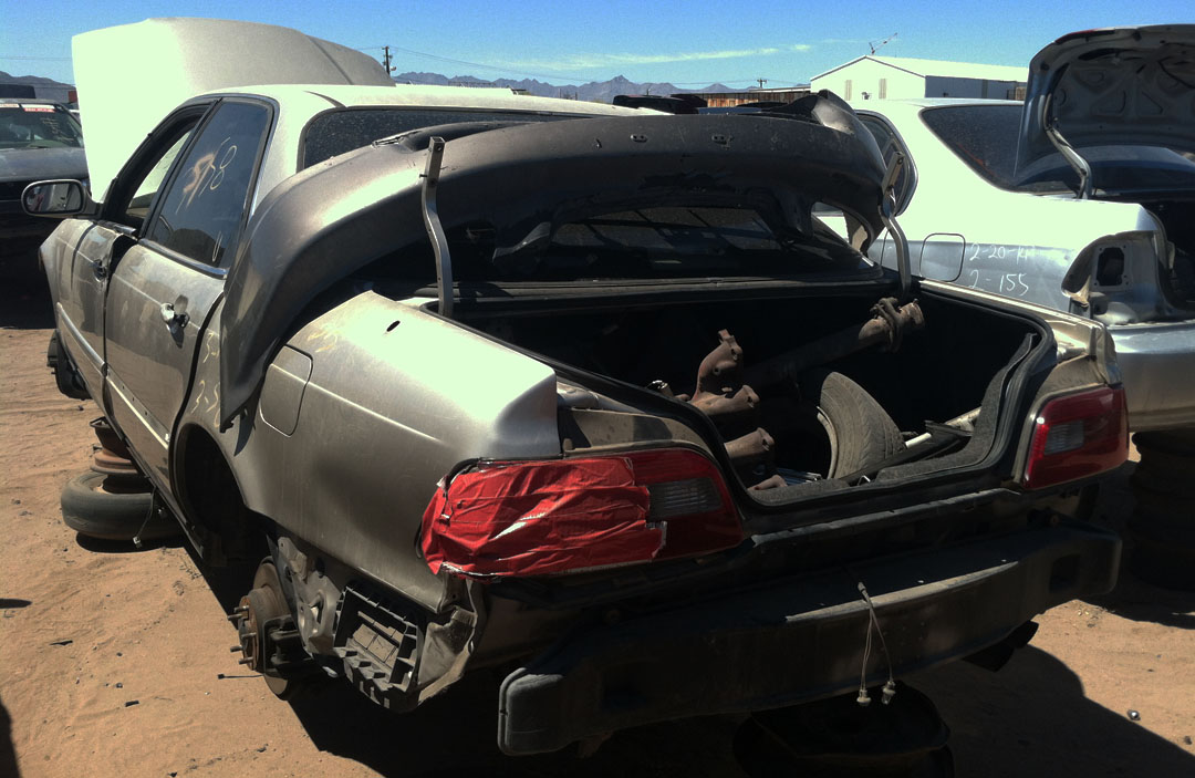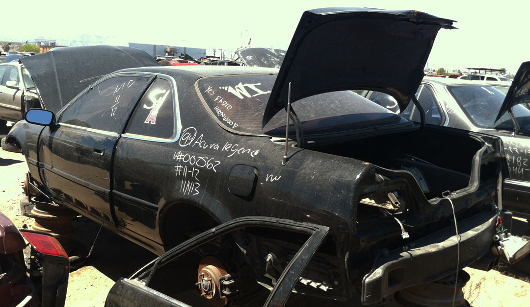 When I’d parked the ILX at Ecology Auto Salvage on Broadway Rd in Phoenix, its exterior thermometer read 102 degrees Fahrenheit.  By the time I got halfway through the yard, taking pictures of Legends here and there, my iPhone had overheated.  Every piece of metal I touched felt like it had been roasting in the coals.  Remind me:  Next time I do this, I need to do it in the morning.  Or take gloves.