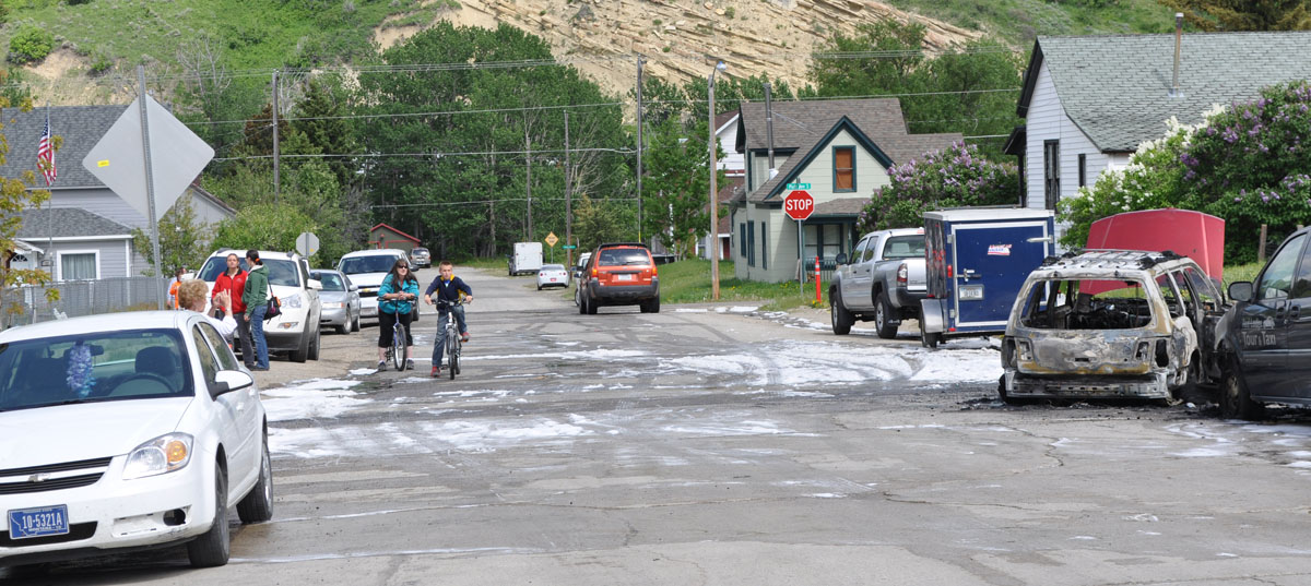We saw the charred remains of an SUV that had caught fire earlier in the afternoon.