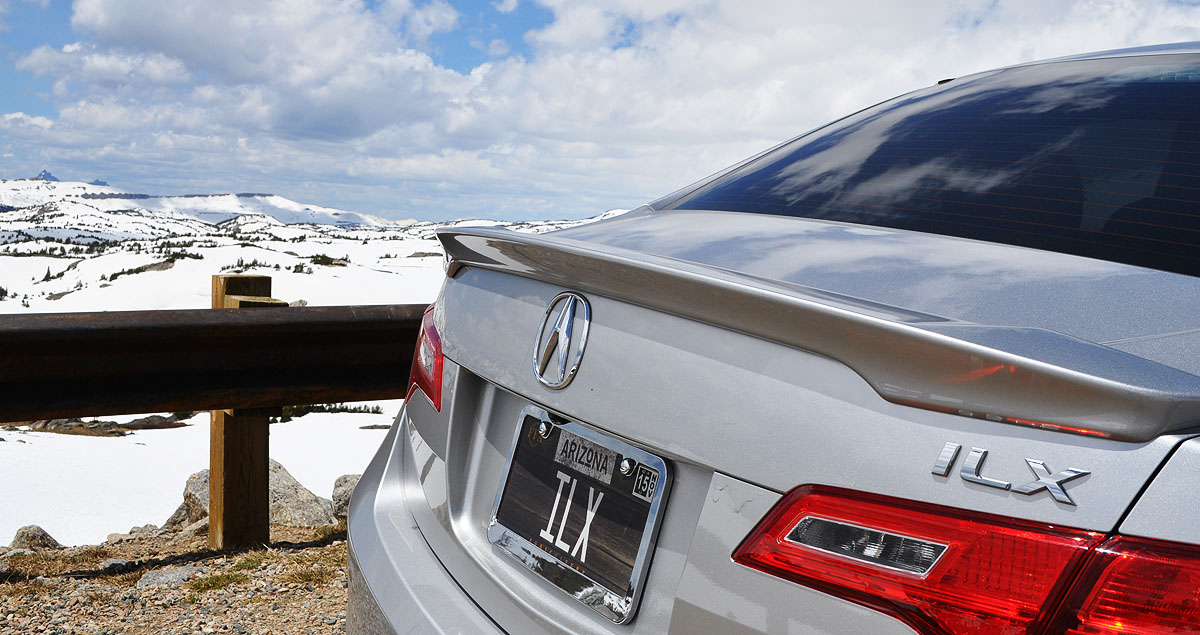 I pulled the ILX off the road for several breathtaking photo-ops. Fresh snow runoff had created dozens of waterfalls all around us. The higher in elevation we got, the higher the snow drifts alongside the road – sometimes towering above us at 3 or 4 times the height of the car. I cannot imagine what a chore it must have been for the snowplows to first blaze their way through the pass a couple of weeks ago for the first time this year. While temperatures only dipped as low as the mid-40’s Fahrenheit, it would have still been a very chilly ride for the few motorcyclists we saw along the way. Each turn presented a new dramatic vista. Clear mountain air allowed us to see many many miles into the distance.