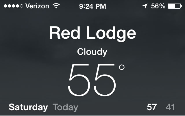 For kicks, I decided to compare Red Lodge weather with my hometown weather. There was a 40-degree difference!