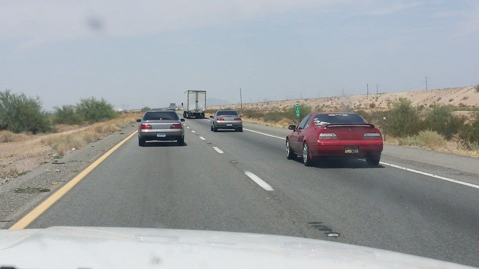 And finally, a well deserved shout-out to my friend Alex. Despite the fact that his Acura Legend did not even have an engine or transmission installed in it just a couple of weeks ago, he got his car together in time to drive it all the way across the country: from Warm Mineral Springs, Florida, to Los Angeles, California, for this year’s NALM. Not only that, but he’s now on his return trip (5,000 miles into it, currently in Chicago) and a couple of days ago passed through my hometown in southern Utah and sent me this photo at the state line. Keep on trucking, Alex!