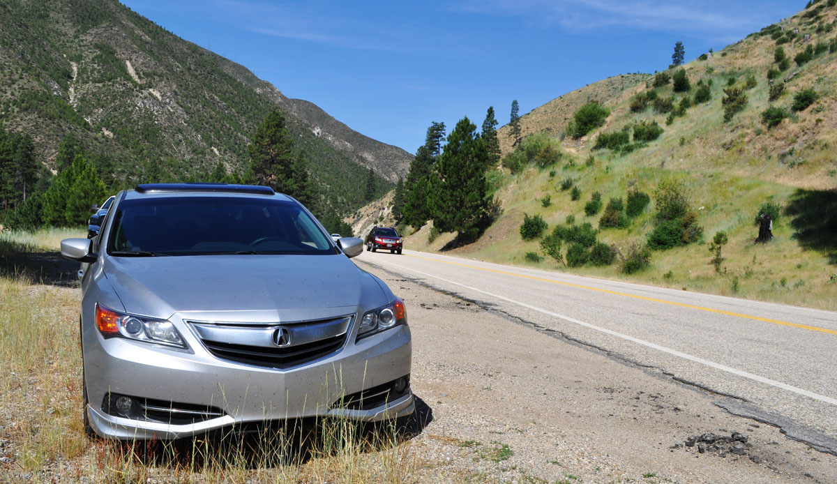 Continuing on Highway 82, I had my first experience with geocaching when Chris and I started heading north on Highway 90. Geocaching is defined as a recreational activity in which participants use a global positioning system (GPS) to hide and seek containers (“caches”). Chris downloaded a geocache app to his iPhone and started guiding me on where to make some turns so that we could find it. I took this picture of the ILX just before Chris (in the background) hit the jackpot.
