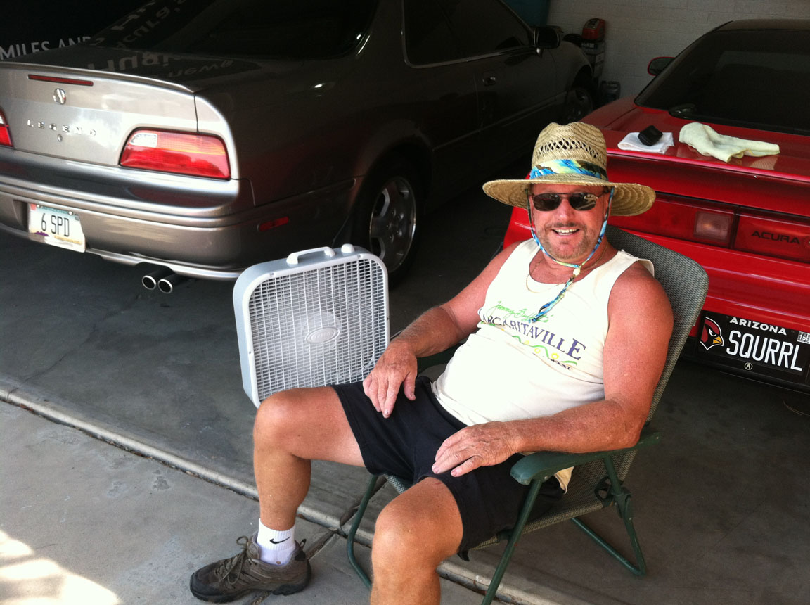 Even in the shade, with a straw hat, lounge chair, and box fan on the highest setting, Alan was sweating. The Phoenix area hit a record 114 degrees today.