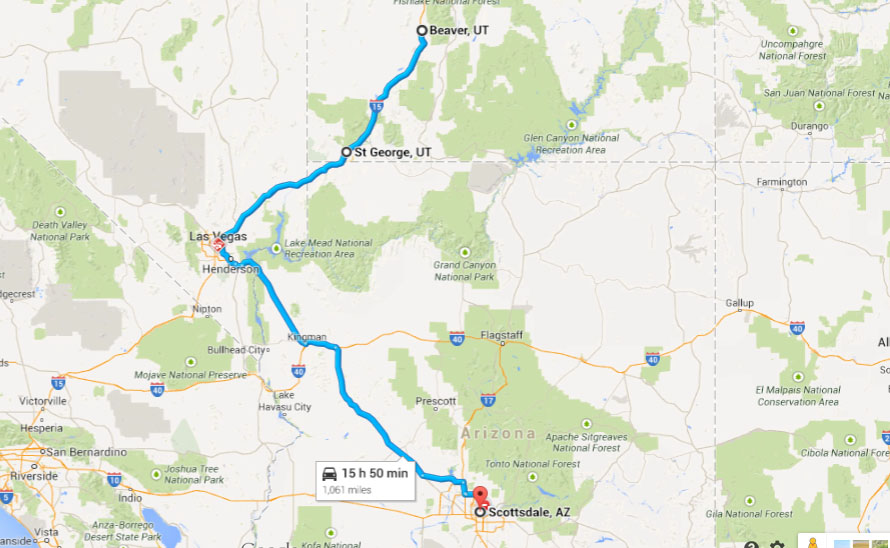 On Friday evening, I received a text message from Brad about how he’d just passed a “big crack in the ground,” accompanied by a picture of the Grand Canyon. Holy smokes – this guy had covered some serious ground in just a matter of a few days! Following my recommendations, he’d already conquered Colorado’s Mount Evans as well as the Million Dollar Highway. And he was heading straight for Phoenix!