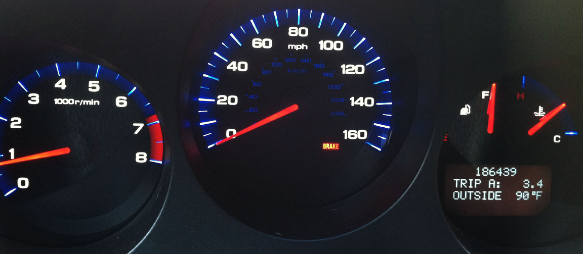 2007 TL gauges at 106,000 miles. The Type-S version got special red accents as seen here.