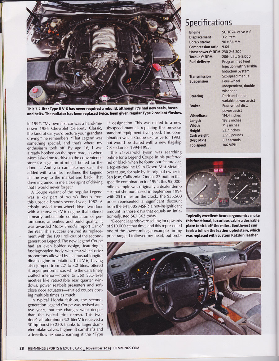 2. Very nice writeup in the Hemmings article. The man who wrote the article is a great writer. I did not know you have gone thru 5 windshields in your Legend. That is a lot! 😉