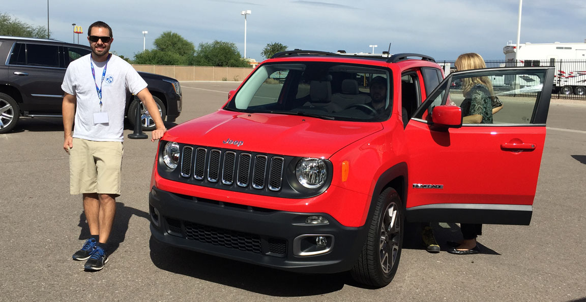 I hadn’t, either. You’re looking at the brand new 2015 Jeep Renegade: known as a “cute brute” for its compact size, yet capable off-road versatility. It will be going on sale next spring, but I got a special first-look last Friday at a kick-off event for this year’s Active Lifestyle Vehicle of the Year program in Chandler, Arizona. Let’s test-drive some new cars!