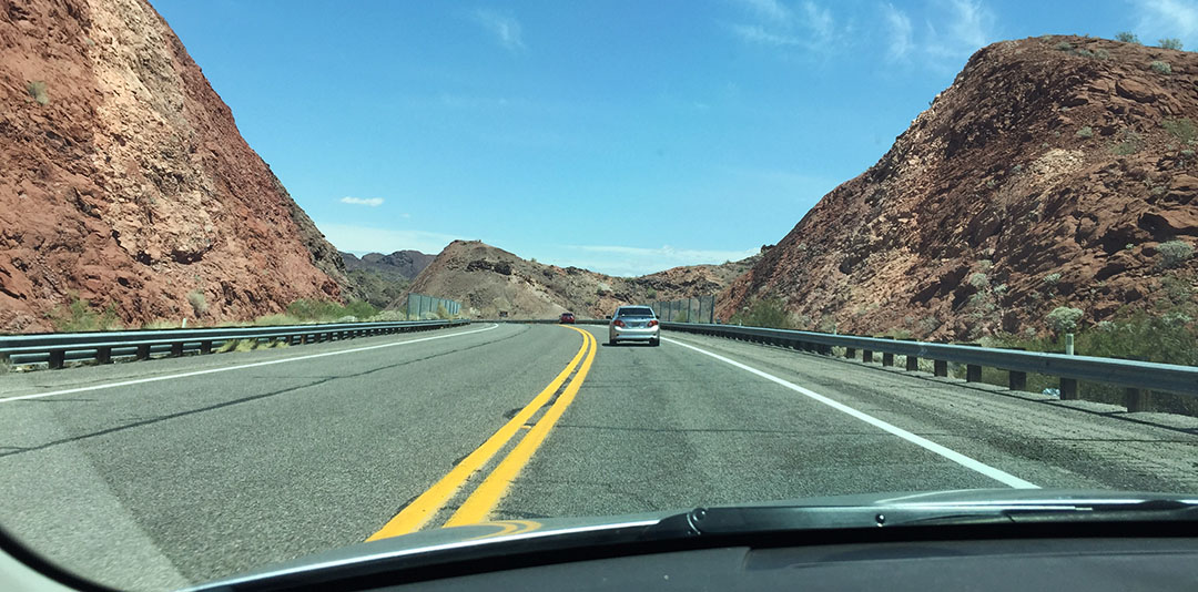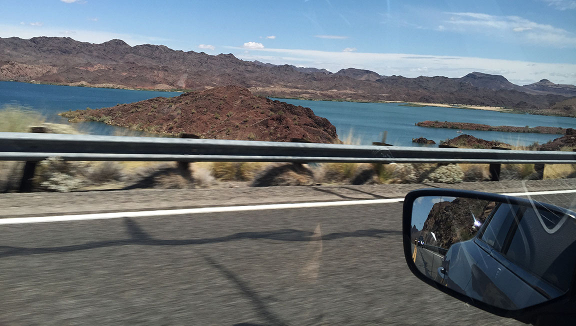 For about the next 90 minutes, Highway 95 ran parallel to the bright turquoise Colorado River.  There were homes lining the river for most of the way, and we spotted a few boaters out enjoying the beautiful Saturday weather. It wasn’t long until we closed in on Lake Havasu City.