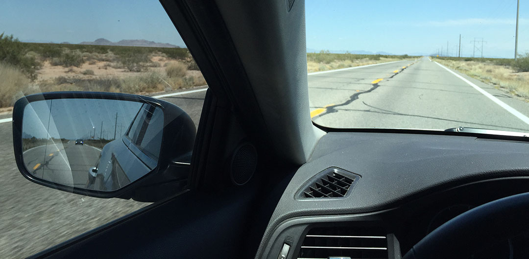 Arrow-straight Highway 95 heading north toward Parker, Arizona from Quartzsite
