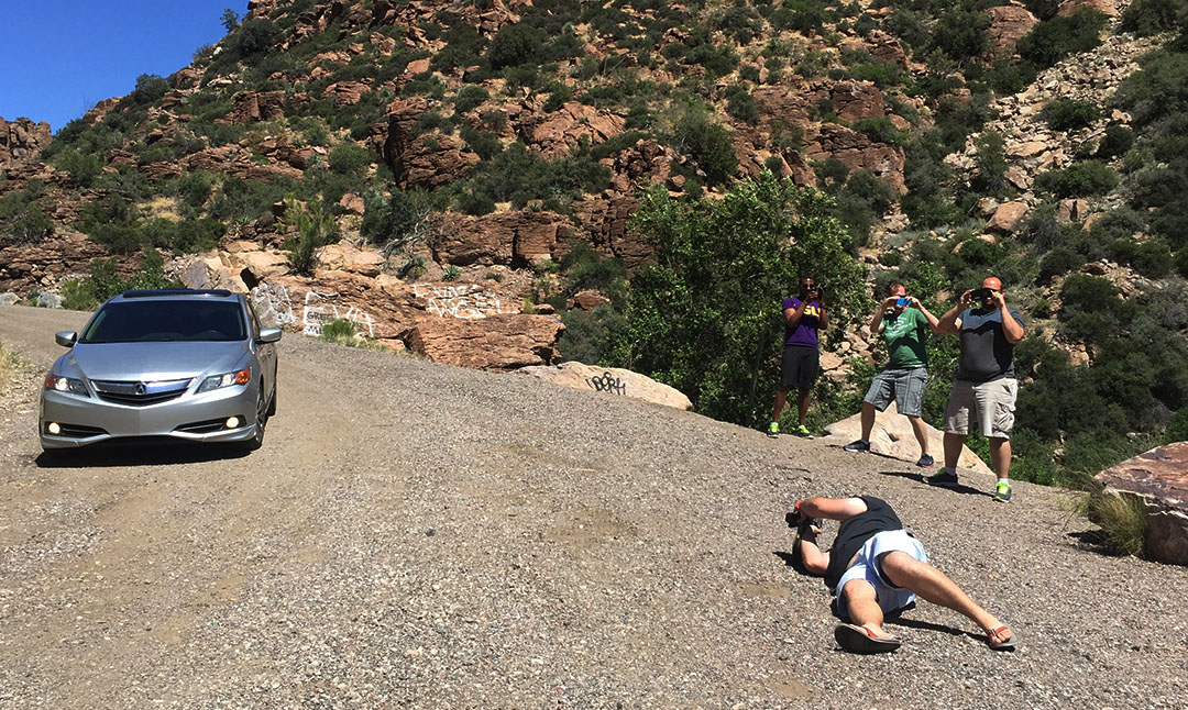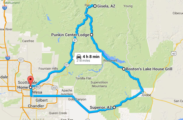 My buddy Lance visited from Dallas for a few days and it seemed only fitting that I treat him to a good old-fashioned Arizona road trip. I rounded up a few other guys and we hit the highway at 10:00 a.m. on Monday morning in my 2013 Acura ILX and in James’ 2011 Kia Forte 5-door SX. After a quick fuel stop at Chevron on Highway 87, we continued northbound to the exit for a teeny town called Gisela. I’d visited the area two years ago but wanted to introduce my 4 friends to the sweet 5-mile road leading there.