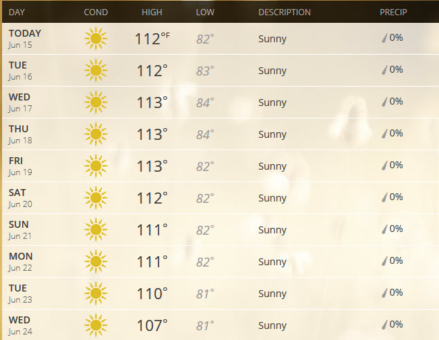 Annnnnd the Phoenix oven is now fully pre-heated! Just looking at the 10-day forecast makes me break a sweat.