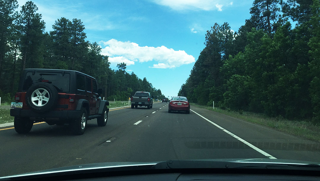 After grabbing a Red Bull and Moon Pie at the Chevron gas station in Globe, we played musical cars and I got to pilot Jason’s 2004 Mazda 6 for the next stretch. For being 11 years old and having 164,000 miles on the clock, the 5-speed Mazda was a solid ride. Jason recently upgraded to an all-leather interior. Bradley and I couldn’t figure out how to pair his audio system to our iPhones, but it didn’t matter because Jason had Linkin Park in the 6-disc changer to keep us company.