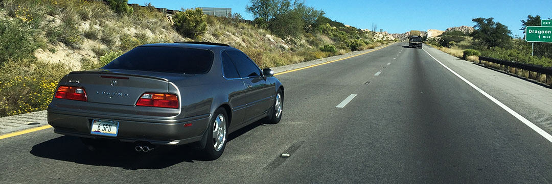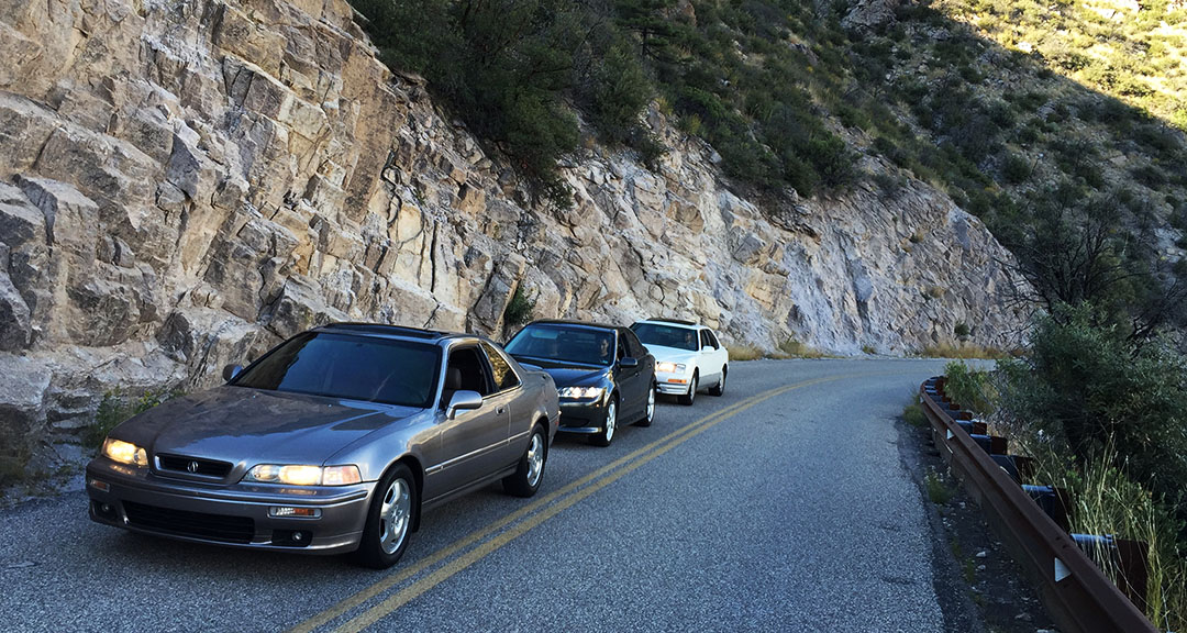 It was a perfect day for road tripping on Saturday morning, October 24th.  Jack, James, Chandler, and I headed out from Phoenix in roughly 1.6 million miles’ worth of cars:  The 1994 Legend, 1996 LS400, and a 2000 Toyota Tacoma.  Luckily we had two-way radios (or would it be three-way, since each vehicle had one) on-hand for the duration of our 233-mile trip to Willcox so we were able to pass the time by bantering back and forth.  James was the first to give the LS400 a whirl.  “Make sure you check out the power seat belt height adjusters on that thing,” I advised.  “Oh, trust me.  I already did,” he responded.  “I’m like a toddler hitting all these buttons.”