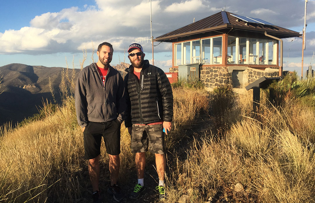 At 4:30 p.m., we set out on a hike up to a fire lookout station that’s on the National Register of Historic Places.  It was a steep and rocky trail originally blazed by the Civilian Conservation Corps in the 1930s.  From the vantage point at the top, administrators could view on a clear day for more than 50 miles in any direction.  I hurried back down the hill and made it to the parking lot just in time for dusk.  Then we rallied back into our Japanese high-milers and returned to Willcox.