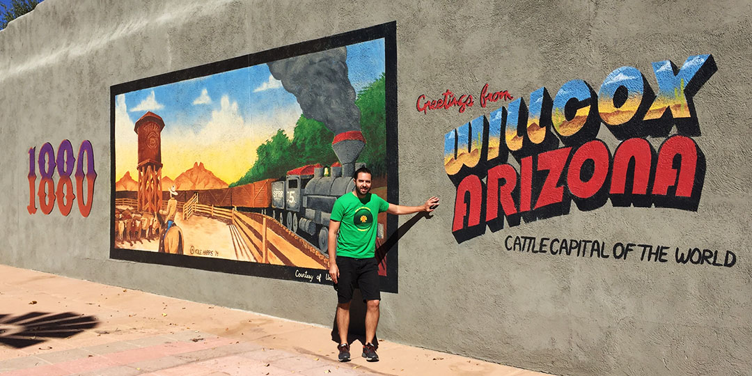 Jason and James Z (another James) from Las Cruces, New Mexico met up with us in Willcox just in time for lunch.  The service was top-tier at The Dining Car, but James L didn’t have much positive to say about his rubbery rack of ribs.  Our next jaunt was to the entrance to the national monument — extremely remote and only accessible via some twisty two-lane back road sections of Highway 186 that go where no T-Mobile cell signal has ever gone before.  Sorry, James L, that you were out of cell phone range for virtually the entire day.  It’s no wonder we passed a blue sign stating NO SERVICES shortly after hanging a left onto Highway 181 for the last couple of miles.  This was not the place to be worried about reliability of your car, let alone one with nearly a million miles on it.