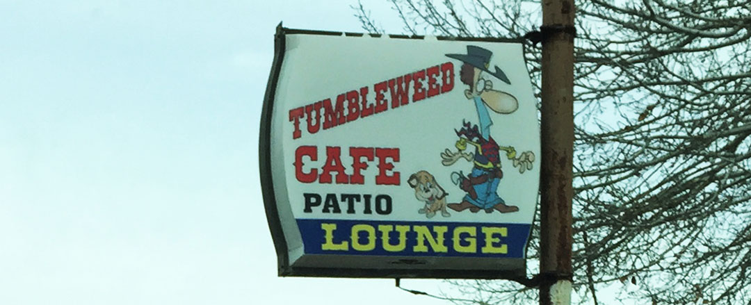 Church bells rang out the 12:00 hour, and I received a wave from a woman on the patio of the Riverfront Lounge across the street. She was probably mumbling to herself, “Damn tourist.” I think I had the only vehicle in town newer than about a 1990 model year. Jason arrived not long afterward in his well-traveled Mazda 6 sedan and we dined at the only place available for lunchtime grub: Tumbleweed Cafe / Patio / Lounge at 206 Old West Highway. Jason and I had work to do: The purpose of our meet-up was to lay the preliminary ground work for a 2016 Alaska drive we’ll be taking together next May. It’s now been 10 years since my dad and I took a similar 7,500-mile round-trip drive to Fairbanks and back in my Legend, and I’ve been wanting to go back.