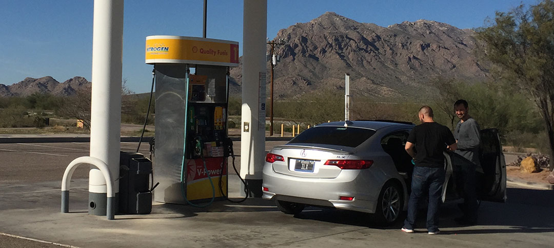 Fueling up halfway between Tucson and Phoenix at Picacho Peak