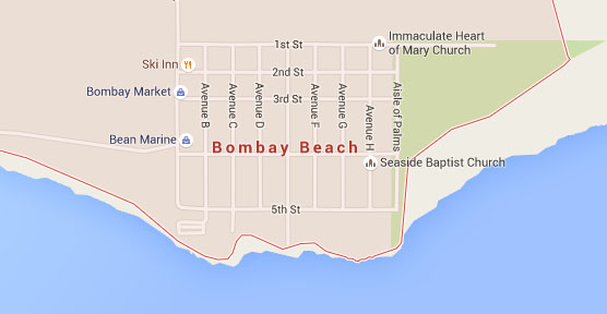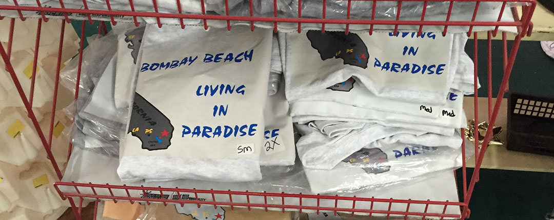 Random geography lesson: Calexico is a town on the border with Mexico. Its Mexican counterpart across the international line is Mexicali. I like how they’ve mixed “California” and “Mexico” in the naming of those cities. Another 25 or so miles down Highway 111, I hit the right blinker and led our threesome of cars onto “Avenue A” in Bombay Beach, California. In the 1950s and 1960s, Bombay Beach was a popular resort destination, even called a paradise.