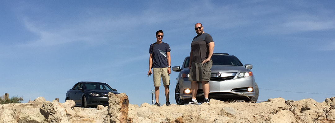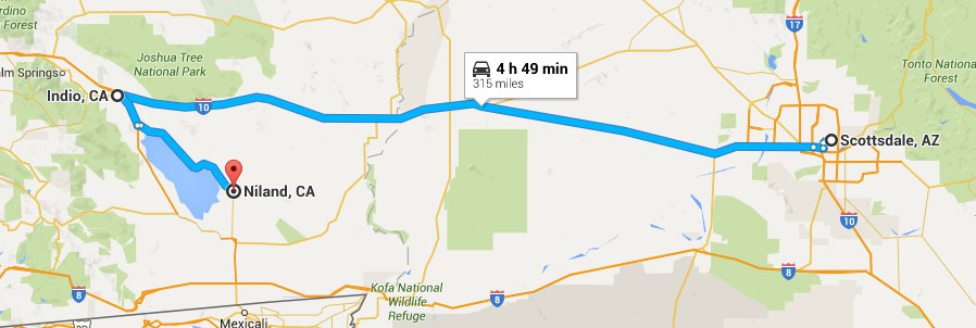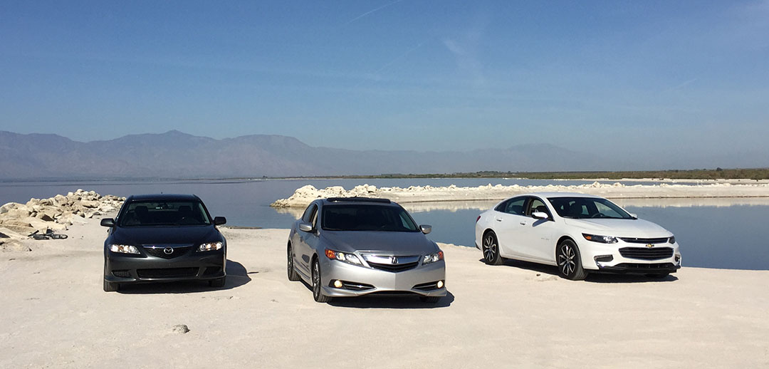 Today the Salton area has a certain allure to it for those of us who love off-beat destinations. Where else can you find a banana museum, remains of a mobile home park, mud pots, and a giant painted mountain all in a day’s drive? My road trip partners and I were determined to see what kind of stuff we could uncover. After a hearty breakfast at Denny’s on Saturday morning, we departed from our motel in Indio and headed along Highway 111 which hugs the eastern shores of the lake. We were in three vehicles: my 2013 Acura ILX, James’ 2016 Chevy Malibu (press / loaner car), and Jason’s 2004 Mazda 6.