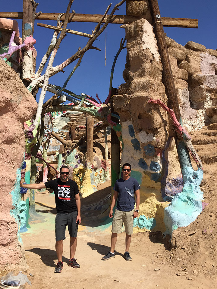 So here’s the scoop on Salvation Mountain: A guy named Leonard Knight spent his lifetime dumping buckets of paint onto a hillside in the barren desert, creating both a living space for himself as well as a religious statement for all who pass by. The site is absolutely vibrant with colors and covered in Bible verses and Christian sayings. “God Is Love” is a recurring theme.